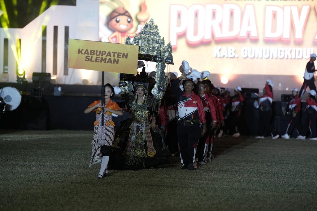 Di tengah atmosfer meriah itu, momen sakral terjadi. Bupati Sleman, Harda Kiswaya, menyerahkan piala bergilir juara umum PORDA kepada Sri Sultan Hamengku Buwono X. Sang Raja lantas menyerahkannya ke Bupati Gunungkidul, Endah Subekti Kuntariningsih, simbol bahwa pertarungan sengit antarkabupaten resmi dimulai.